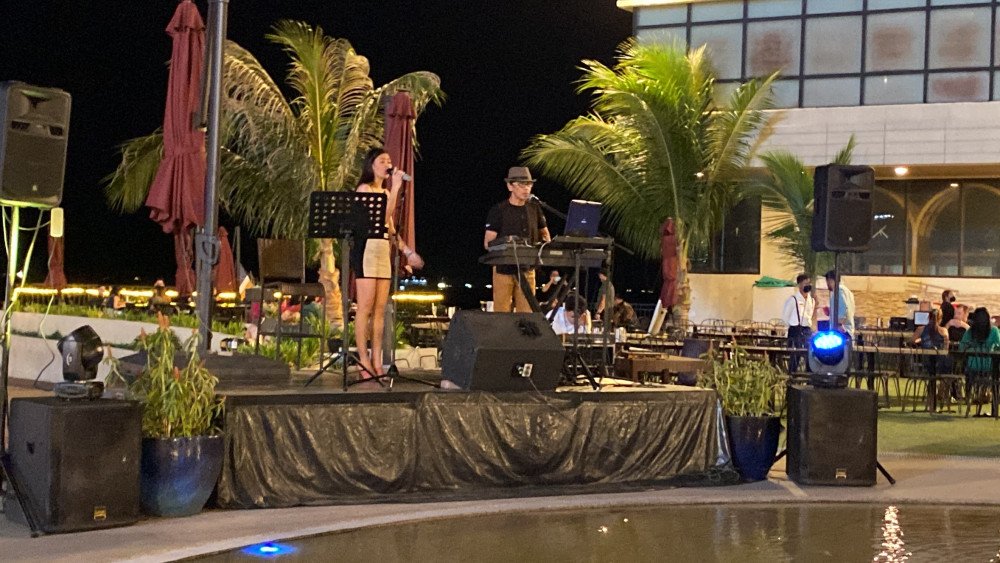 마닐라만 바다를 배경으로 맛있는 음식을 먹을 수 있어요.