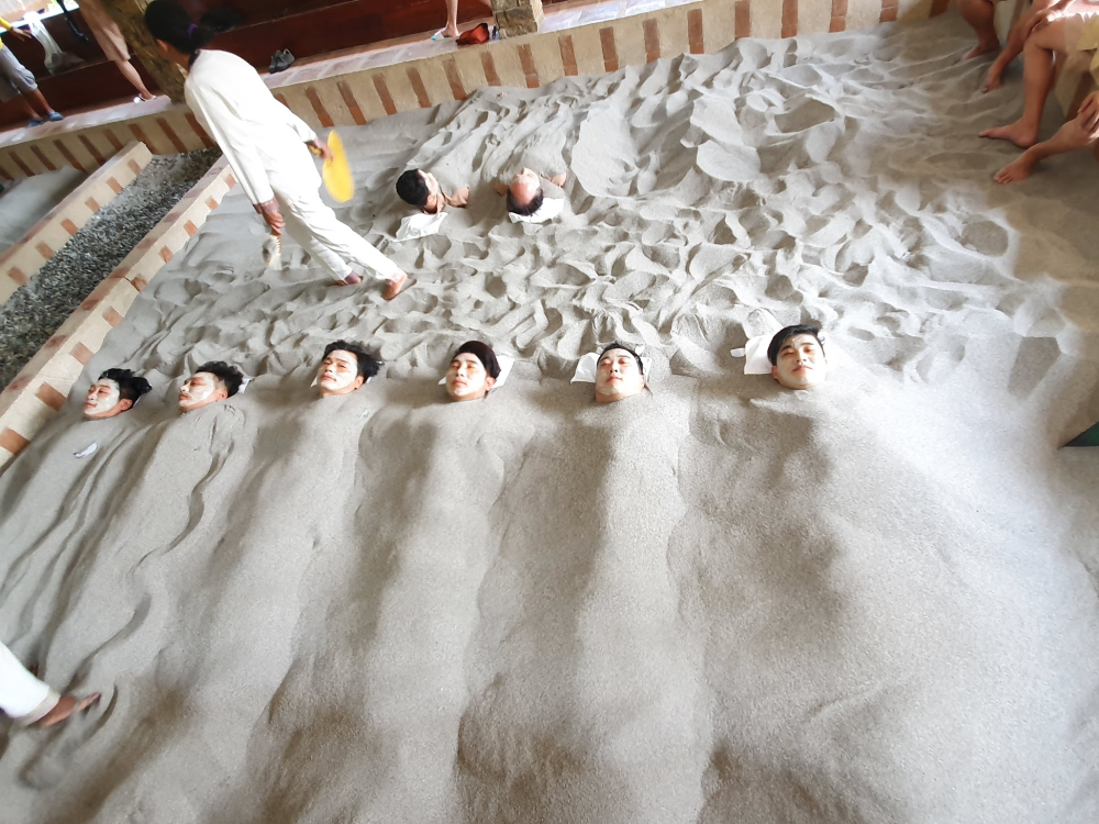 1시간 정도 온천 즐기고 나와서 모래 찜질~ 머드마사지~ 받고 나오니 직원이 갈아 입을 옷을 주고 다시 지프를 타고 숙소로 돌아 왔어요 ~